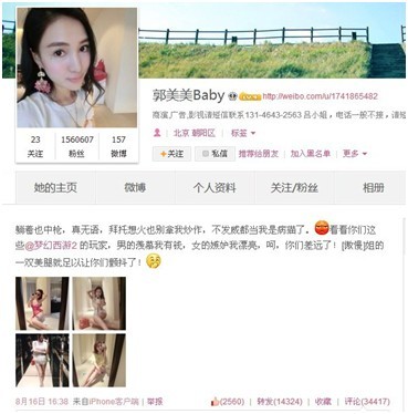 8月16日,郭美美在发出吐槽微博之后,引发众多网友的疑虑,“怎么这毫无征兆的,美美就公开挑衅《梦幻西游2》玩家呢?”,“炒作达人美美的炒作手段不至于低端成这样吧?”……后来有细心网友爆料,郭美美发布吐槽微博或是源于8月初梦幻网友贴出的一副调侃漫画,郭美美是其中的一个主角。