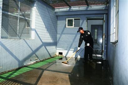 记者在基地看到,52间犬舍,每间16平方米,玻璃、门窗一切都是按照公安部标准修建,里边整洁干净、毫无异味。“14只进口警犬入驻基地后,每只犬都将配备一个单间,冬天有地暖。在基地民警的眼中,警犬就是我们的孩子。每天早晚都有民警负责清洁打扫,保证犬舍的干净、卫生。”市公安局警犬训练基地队长张杰告诉记者,民警打扫犬舍还有一个重要的任务,就是观察警犬的粪便,以确认警犬身体是否健康。此外,警犬的伙食也不错,每顿都能吃到优质的狗粮配上牛肉汤或者是牛肉。