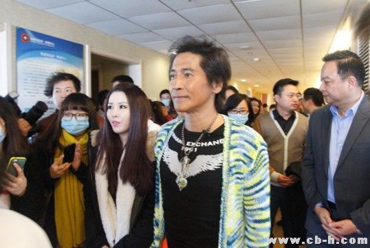 齐秦和许艺娜在陆道培血液肿瘤中心接受采访