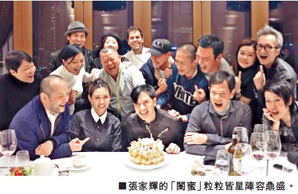 中新网12月2日电 据香港“成报”消息,今天是张家辉49岁生日,不过日前他的一众好友、粉丝等,已提早为他预祝。家辉还不停收到生日蛋糕。继内地粉丝、《扫毒》团队代表古天乐、陈木胜、寰宇老板林小明外,日前一班被家辉形容为的“闺蜜”提早为寿星庆祝生日,准备了一顿别具心思的晚餐,令他感动不已。