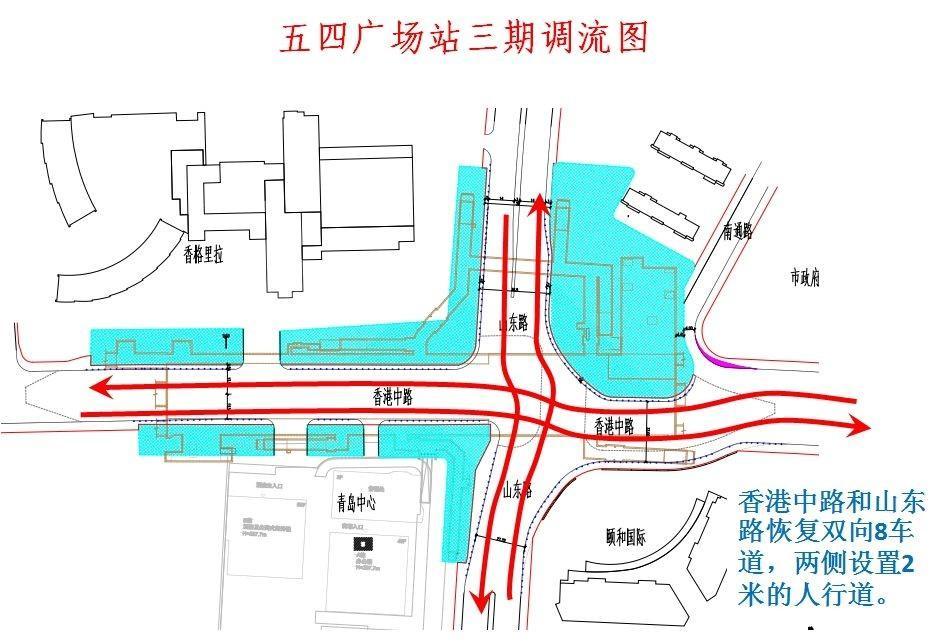 青岛新闻网12月30日讯 明晚,青岛地铁3号线五四广场车站将完成三期调流,恢复香港中路和山东路双向八车道通行,有力地缓解沿海一线的交通压力。