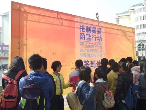 以“抵制雾霾 蔚蓝行动”为主题的2014年青岛麦岛广场全民健步行活动,于3月16日上午在青岛麦岛广场举行,现场有超500余名群众参与健步行活动。