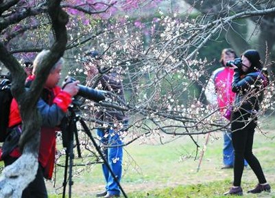 进入园中,凡是梅花集中开放的地方,都有人群排着队照相留念。据园内一位工作人员介绍,23日是周日,比周六的人还多,应该在20000人左右。没有想到,今年的梅花开得较早,也漂亮,不像去年遭遇“倒春寒”,梅花开得不够好,也吸引不了人气。