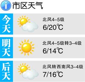 4月5日至7日市区最低气温6-9℃ 最高气温15℃左右