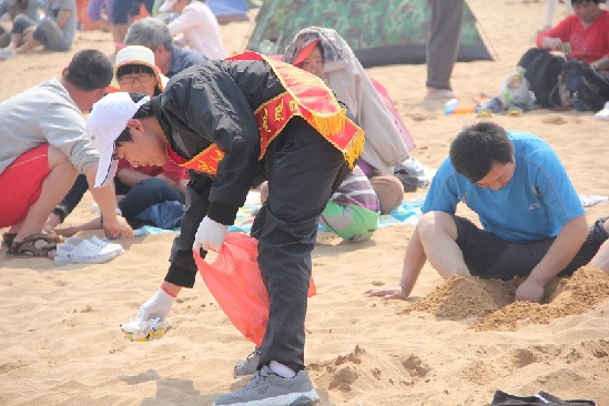 青岛新闻网5月4日讯 劳动节小长假期间,一群来自中国石油大学(华东)的年轻人放弃休息时间,在金沙滩风景区捡拾垃圾。