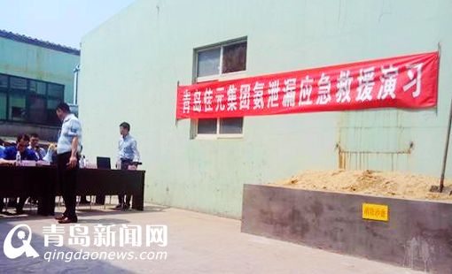 此次演练的科目设定是青岛佳元集团有限公司因液氨储存罐发生破损导致大量液氨泄漏,造成人员伤亡,并引发环境污染事故。主要目的是检验政府职能部门和企业内部应急预案响应、联动机制运行、应急物资的贮备和调用以及应急现场随机处置能力。环保部门主要负责对事故现场大气进行连续监测,及时发布信息,并对可能造成了大气污染物扩散范围进行评估,向指挥部提出人员疏导建议。同时组织环境应急处置小组,对液氨稀释废水进行导流、收集、送运,避免造成二次污染。