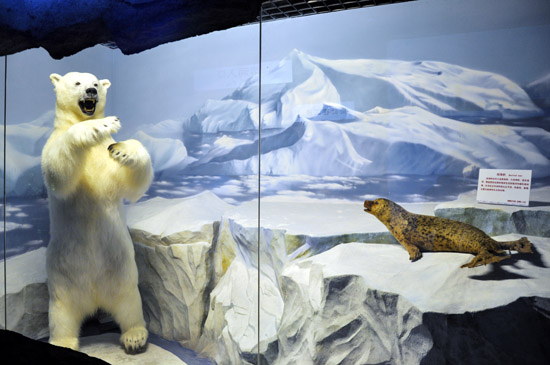 据该校相关负责人介绍,青岛滨海学院世界动物标本艺术馆可用“全、真、特、韵”四字概括:“全”是动物标本种类齐全,有600多种,1100余件; “真”是标本全部由原生动物自然死亡后,经专业部门审批、专业机构精加工而成,并由动物原产地直运青岛;“特”是由于动物标本来源区域广泛,覆盖了南极洲以外全部区域,标本异域特色明显,易让国人耳目一新,开阔眼界;“韵”是该馆注意选材和布局搭配,营造出形态各异的动物生存、成长环境:极地冰川、温带季风、热带雨林、稀树草原等应有尽有,“兽有山野森林、鸟有湿地绿荫”直接打造出逼真、形象、原生态;另外,该馆在选择标本时,注重雄雌搭配、长幼结合,在标本馆内,不时会看到“狮子一家亲”等同类品种不同成长阶段的标本组合。另外,该馆还注重藏品品质和观瞻性,馆藏有世界陆上最大动物非洲象,世界陆上最高动物长颈鹿,世界最具极地色彩的动物北极熊等上百件世界濒危动物品种标本,既珍稀又极具观赏价值。