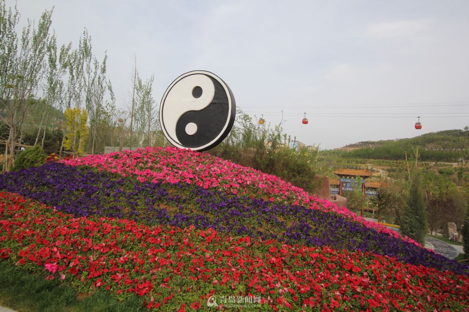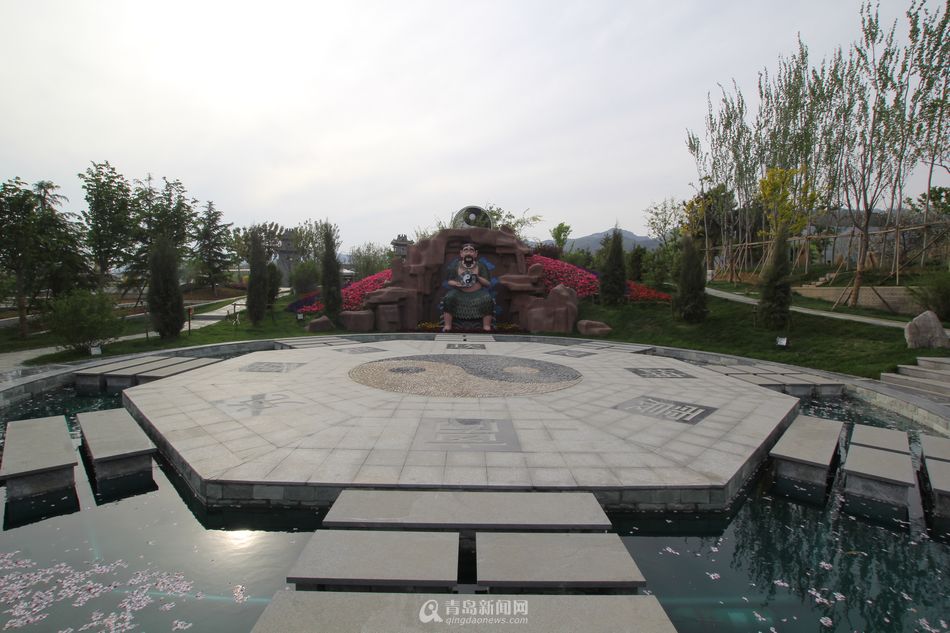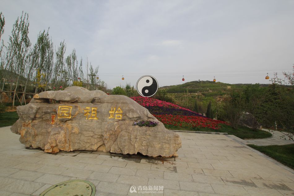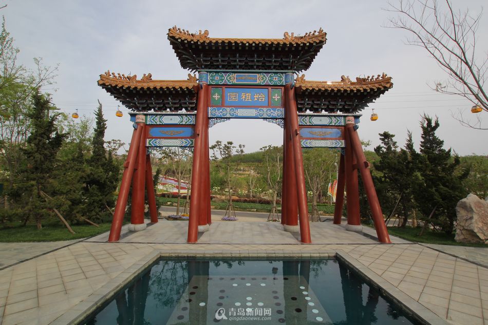 甘肃始祖园,位于青岛世园会中华园内,占地面积约1541平方米,以“羲皇故里、寻根访祖”为主题,以太极八卦图、伏羲雕像为载体,通过入口牌坊、图腾浮雕、花瀑、伏羲文化符号、太极八卦水景、伏羲雕塑、人面鲵鱼瓶伏等七个主要景观来充分展现伏羲文化元素符号,弯曲的园路和带有伏羲画面的置石布置来让游客慢慢体会伏羲一生为人类所做的贡献。在展园园艺景观设计上,使用甘肃的特色植物,如天水的市花月季、甘肃临洮大丽花、紫斑牡丹等植物。