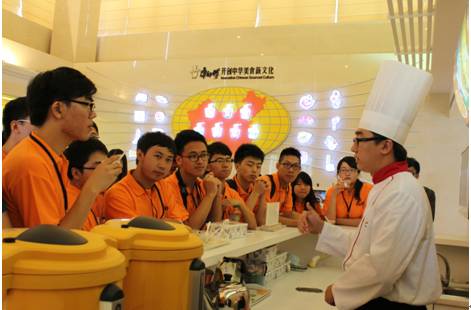 选手们参观康师傅方便面印象馆,并饶有兴致地与泡面师傅交流