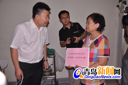 秘书长代表民间资本管理协会将捐款交到老人手中