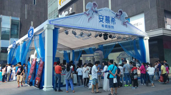 人群的不断涌进,让安慕希《听好声音喝安慕希抢百万微信红包》主题路演活动不得不延续到了晚上。悠扬的乐曲、精致的安慕希希腊酸奶DIY美食、好声音赛场与希腊古典建筑结合的路演现场,吸引了足够的目光,众多消费者在排队等待参与互动,现场的气氛非常热烈。
