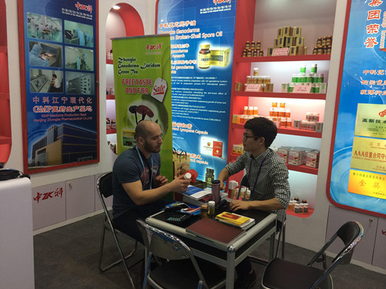 南京中科集团向来以先进的技术创新能力和稳定高效的产品质量而著称,本届参展更针对性地让中科创新牌灵芝孢子油、中科爱特胶囊、中科番茄红素、中科牌蝙蝠蛾被毛孢菌丝体(冬虫夏草)提取物胶囊等高端健康系列产品闪耀亮相,受到了来自美国、加拿大、澳大利亚、新加坡、迪拜等世界各地客商的关注与青睐。