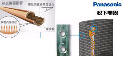 此外,作为空调的关键性部件,室外机的热交换器也进行了优化。对于散热的铜管内侧进行修正,如螺纹形状的高度、数量和角度等,实现了效率的提升。加上独创性的立体构造,还增加了热交换的面积。