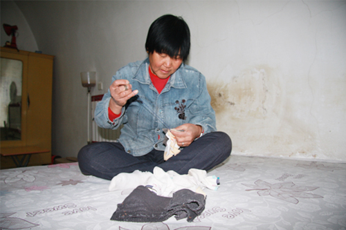 韩会林为侄女韩青梅、侄儿韩青松缝补衣物。图片来源:山西文明网