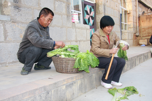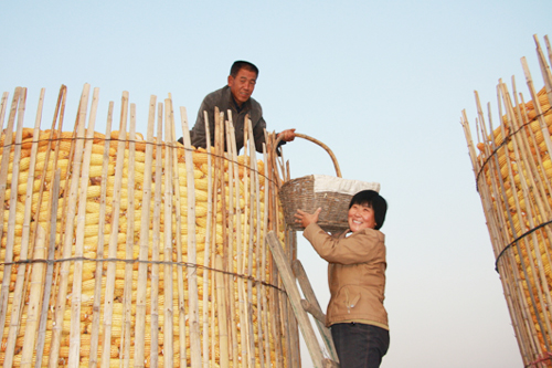 夫唱妇随的老两口。韩会林和丈夫赵占元囤玉米。图片来源:山西文明网