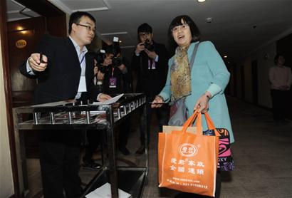 市十五届人大四次会议的代表报到后立即投入工作 会场布置简洁 代表“装备”更俭朴