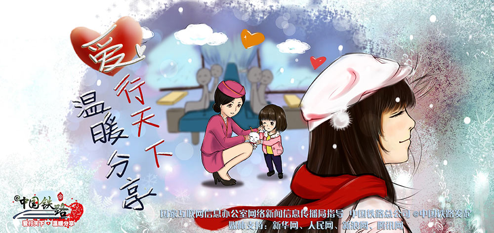 在“爱行天下·温暖分享”铁路春运公益活动中,你可以拍摄、分享温馨感人的旅途故事,传递身边的爱;你可以在除夕夜欣赏精彩的列车春晚,在大年初一与铁路人一起“乡音大拜年”;你还可以秀出家乡的美食美景,分享节日里的喜悦心情。很有可能你在返程途中看到自己的作品,呈现在@中国铁路精心制作的活动精品展示中。