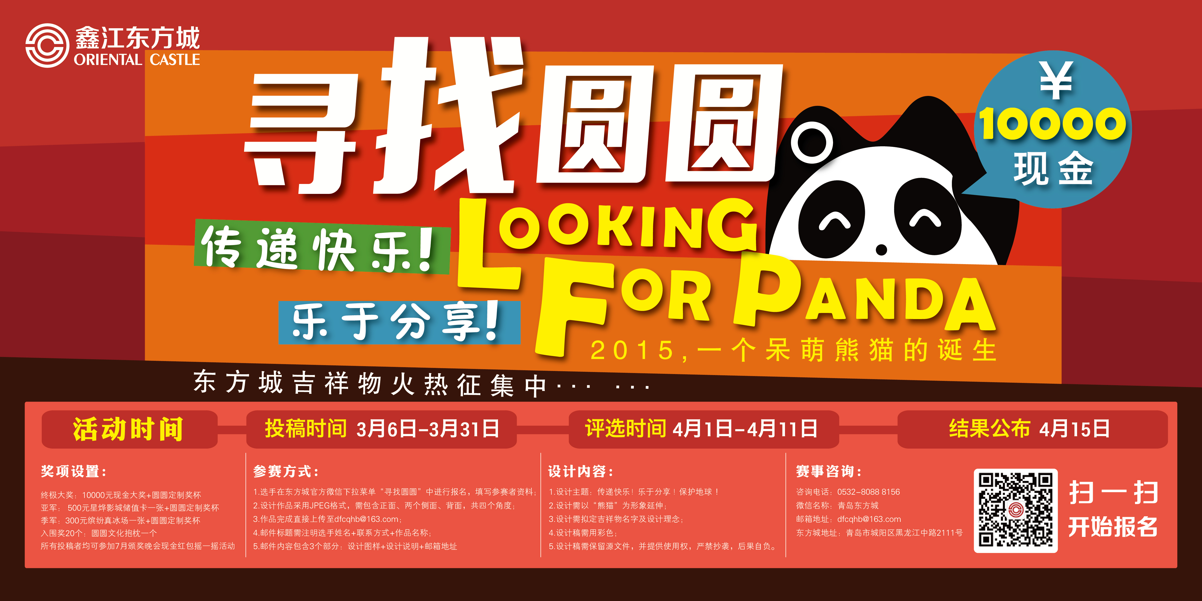 鑫江东方城位于黑龙江中路城阳段,是北青岛一站式购物中心典范,一直以建立人文与自然相融合的家庭娱乐式体验公园而努力,2015年我们要把概念延伸和推广,现举办以传递快乐、乐于分享、保护地球为主题的吉祥物征集活动。