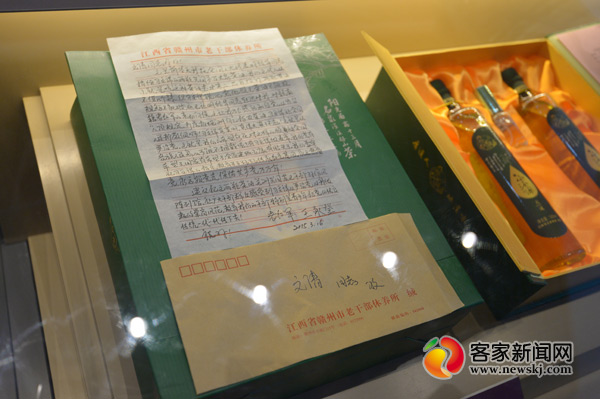 随两瓶茶油一起入馆的,还有王承登写给江西省人大常委会副主任、赣州市委书记史文清的一封信。记者何敏 摄
