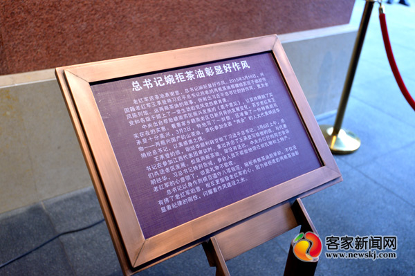 从王建国手里接过茶油,苏区干部好作风陈列馆馆长杨美兰很是激动:“这是我们陈列馆收到的至为珍贵的展品。习总书记以自己的实际行动体现了对八项规定和‘三严三实’的模范践行。在以后的讲解中,我们要把这两瓶茶油的故事好好地讲给来自全国各地的观众听。”