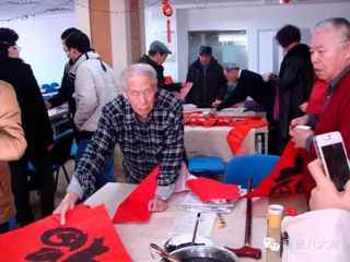 活动现场,社区90岁高龄的孙延明老人弯着腰,笔耕不辍地写了两个多小时,直到准备的纸张全部用完,剪纸高手金文阿姨更是一气呵成剪出一幅幅羊年作品。大家看到写好的福字、春联和剪纸作品,都难掩激动、脸上挂满了笑容,活动现场到处飘扬着喜气的红色!