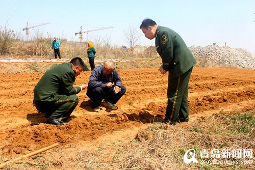 4月30日上午10时许,开发区公安分局黄岛边防派出所民警帮助社区居民开荒。