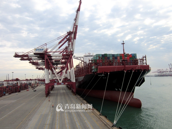 最大载箱量19870TEU的“阿拉伯巴尔赞”轮靠泊青岛港