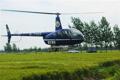 昨天上午,两架美国罗宾逊R44大型直升机,分别载着400斤农药呼啸升空,对即墨市30万亩高产创建麦田进行飞防作业。这是即墨继去年首次在青岛地区启用直升机飞防试验成功后,新增两架直升机进行高效飞防作业。预计本周内将起飞400多架次,每架次10多分钟,就能完成800多亩小麦飞防任务。