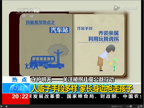 (央视关注被拐儿童的节目:守护明天。)
