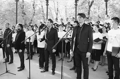 夏季的卢森堡公园树木葱茏,优美雄壮的歌声在树叶间萦绕,绿树掩映下的歌唱者和观众仿佛都陶醉了。观众里有专程前来听音乐会的法国文献专家,也有驻足流连的一家三口,虽然语言不通,但音乐本身传递出的反对侵略、歌颂和平的信息感染了现场的每一个人。