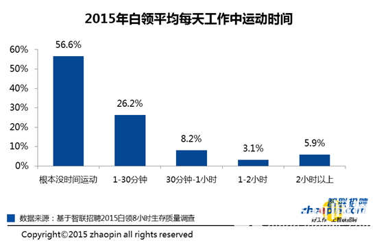 超过一半白领上班时间无任何运动;三分之一白领每周加班超过5小时