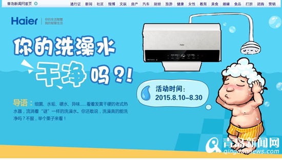 青岛新闻网讯 乐跑在左,健康在右,跑出健康新生活。2015年8月10日-8月30日,青岛新闻网联合海尔净水洗热水器,推出《乐跑青岛 致净健康》,以最简单的跑步运动方式将热情与汗水尽情挥洒,再用最新最安全的清洁方式给你健康全护。
