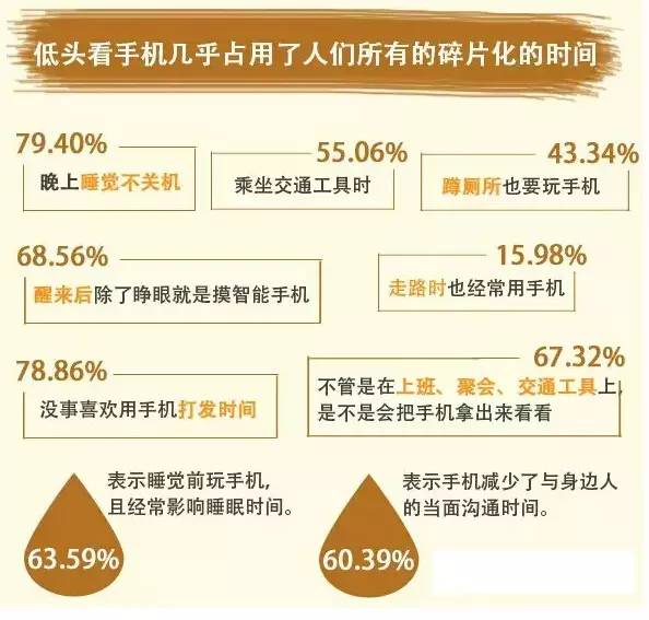 手机已悄悄地改变了我们的生活方式,有这么一群人,他们无论是吃饭、上班、聚会、坐地铁,甚至是上厕所,都是手机不离手,不曾抬过头。