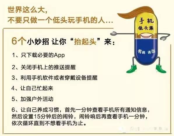 如果你连手机都控制不了,何以控制自己的人生?世界如此美好,你却低头忽视;亲人朋友如此珍贵,你却拒绝沟通。最后,致所有的低头族们,请抬起头,看看身边,面朝大海,才能春暖花开。