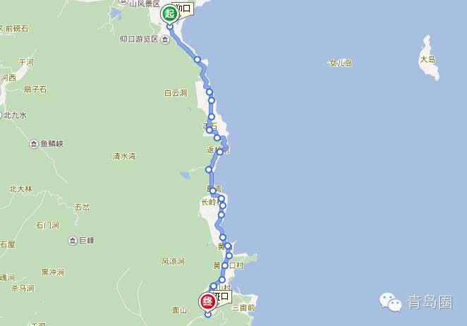沿途景点:轮渡、团岛、栈桥、八大关、惜福镇、崂山仰口