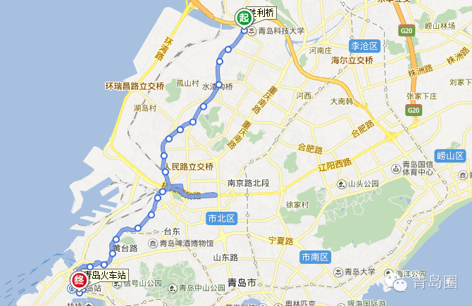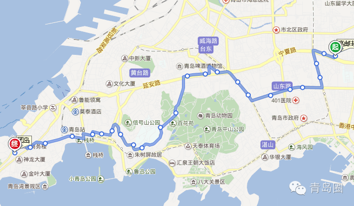 沿途景点:栈桥、百花苑、小西湖、小鱼山周边、芝泉路、西镇