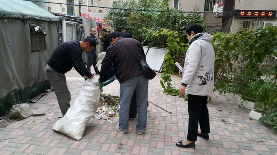 记者在现场看到,物业和社区的工作人员正合力拆除一处居民私自搭建在路边的板房。“以前装修用的一些木头、地板之类的杂物不舍得扔掉,就自己搭了个小屋放杂物,没想到给周边的居民带来了不便,我一定积极配合拆除。”私自搭建板房的居民不好意思的说道。“我们前期都会做居民和商户的思想工作,多与他们沟通了解情况,并尽量帮他们解决实际困难,让他们从思想上意识到占道经营和乱搭乱建是不对的,这样才能从源头上遏制违建现象的再次发生。”秀湛路社区的工作人员说道。