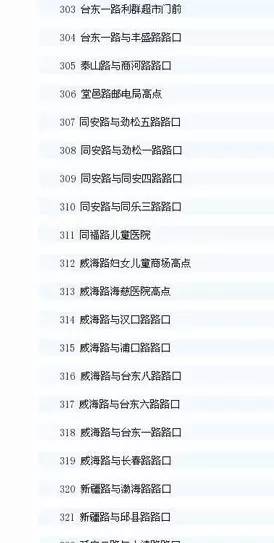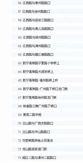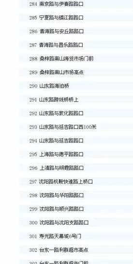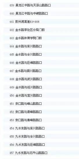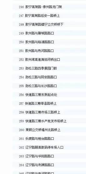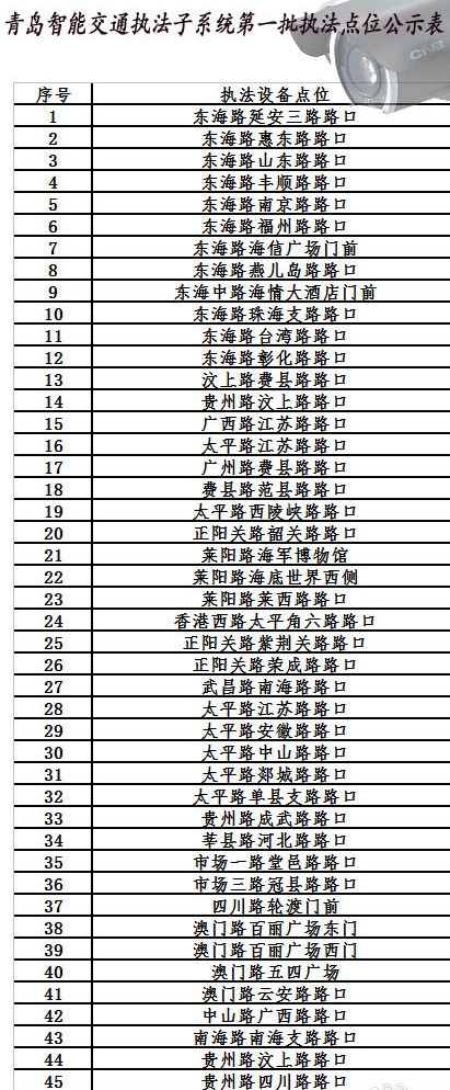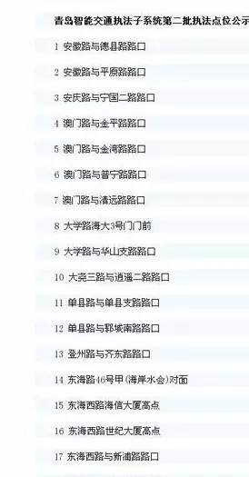 青岛市区智能交通抓拍系统的点位共有556处。其中,前海一线在去年8月18日启用,其他点位在去年10月1日启用,全名单如下: