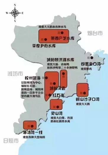 在青岛地区,初冬越冬候鸟出现区域包括沿海湿地、内陆河流沼泽湿地、水库池塘等湖泊湿地。集中出现在胶州湾沿岸河口、李村河、娄山河、白沙河、墨水河、大沽河、洋河口、风河口、崂山沙子口湾、东瀛湾、仰口湾、鳌山湾、横门湾、丁字湾、唐岛湾、海青湾、棘洪滩水库、产芝水库、姜山堤湾水库、滋阳水库、尹府水库、大泽山水库等地。