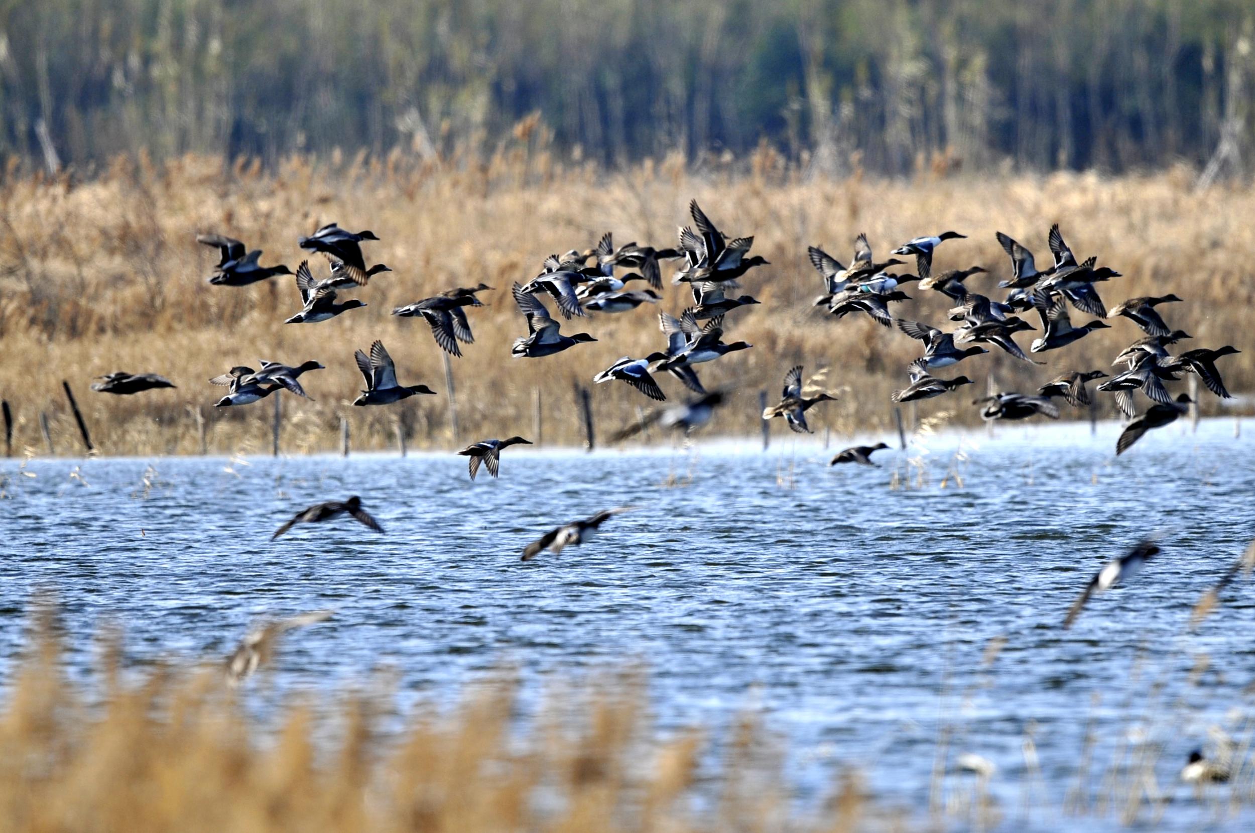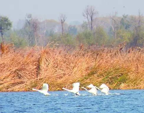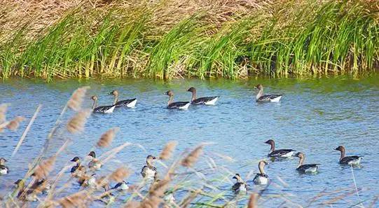 广袤的湿地里到处都是芦苇荡,为鸟儿提供了天然的栖息之地。这里有白鹭成群起舞,也有野鸭捉鱼正酣。据统计,初冬时节,在这里能见到18种国家二级重点保护的鸟类。