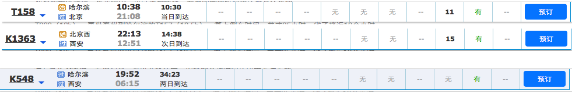 比如『西安→哈尔滨』。如果坐直达车K546,车票热门时段非常难买,一共要近34个小时。而如果先坐T232(12h),再坐泰州到哈尔滨的T157(10.5h)。算上倒车时间一共才25小时,省了将近10个小时,票也好买多了。