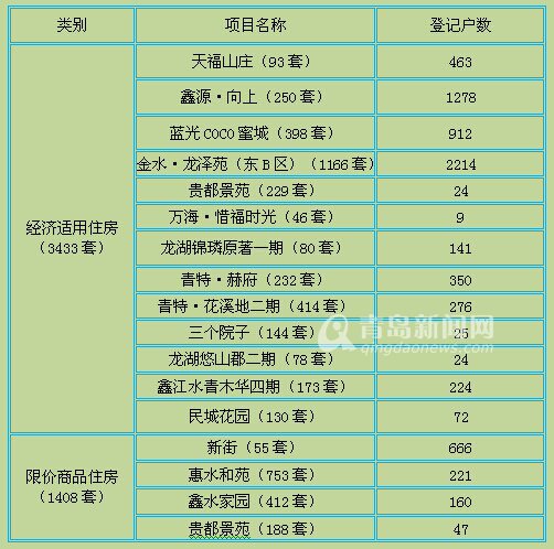 根据市国土资源和房屋管理局公示数据显示,我市第二批保障房共有17个项目,共4841套房源,包含13个、3433套经济适用房和4个、1408套限价商品住房,市南区、市北区、李沧区和城阳区。