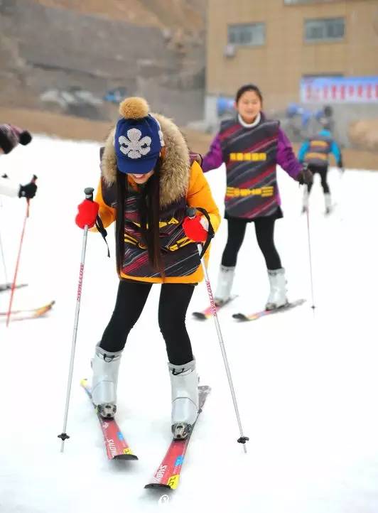 青岛滑雪季欢乐开启 美女滑姿优雅