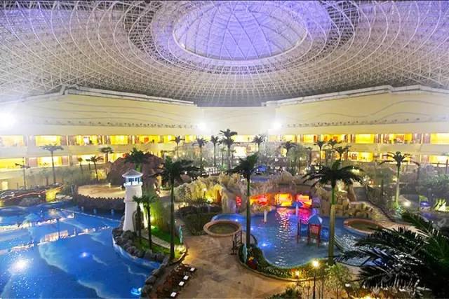 目前国内最大,唯一兼具娱乐与养生功能于一体的海洋文化主题乐园。无论规模还是配套设施,在亚洲乃至世界均属一流。海洋温泉共有风格迥异的温泉池66座,穹顶跨度最大处达128米,是当前国内跨度最大的室内海洋温泉。