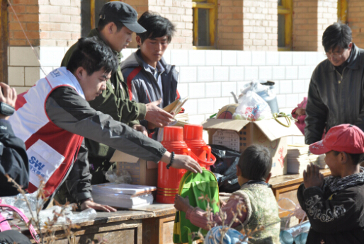 救援队的队员们作为红十字志愿者,他们视灾区群众为亲人,把每个灾区群众都称作“家人”。为了更好地为“家人”服务,让“家人”的生活早日安定下来,队员们既是搬运工、又是交通疏导员,既是医疗救护员,又是心理疏导员。甘家寨子社里的汪明珍老人在地震中痛失了25名亲人,灾后老人不吃不喝,仅依靠吊点滴维持生命。救援队得知情况后,主动找老人聊天、谈心,多次耐心开导老人。最终在队员们的劝说下,老人情绪逐渐平复,脸上偶尔还会露出笑意,慢慢地由自己勉强进食变为正常进食。离开鲁甸时,老人身体已基本恢复。