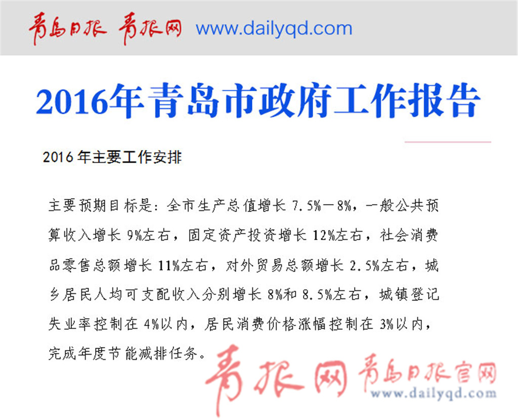 2016年是实施“十三五”规划开局之年,也是本届政府收官之年。做好今年工作,必须主动适应经济发展新常态,坚持改革开放,坚持稳中求进,坚持稳增长、调结构、惠民生、防风险,加强结构性改革,抓好去产能、去库存、去杠杆、降成本、补短板工作,加快培育新的发展动能,改造提升传统比较优势,增强持续增长动力,推动各项工作实现新提升、迈出新步伐,努力实现“十三五”时期经济社会发展的良好开局。主要预期目标是:全市生产总值增长7.5%-8%,一般公共预算收入增长9%左右,固定资产投资增长12%左右,社会消费品零售总额增长11%左右,对外贸易总额增长2.5%左右,城乡居民人均可支配收入分别增长8%和8.5%左右,城镇登记失业率控制在4%以内,居民消费价格涨幅控制在3%以内,完成年度节能减排任务。重点做好以下工作: