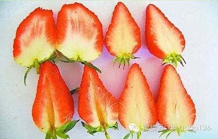 2、使用激素的草莓靠近把儿的地方是白色的