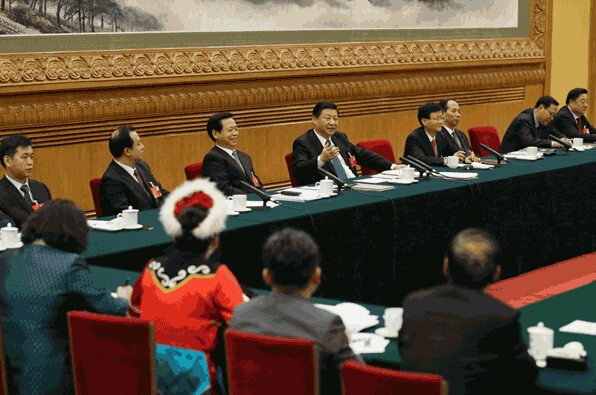 3月7日,中共中央总书记、国家主席、中央军委主席习近平参加十二届全国人大四次会议黑龙江代表团的审议。新华社记者 兰红光 摄