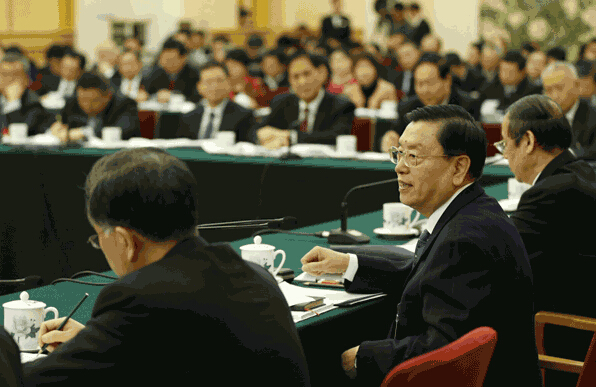 3月7日,中共中央政治局常委、全国人大常委会委员长张德江参加十二届全国人大四次会议安徽代表团的审议。新华社记者鞠鹏摄