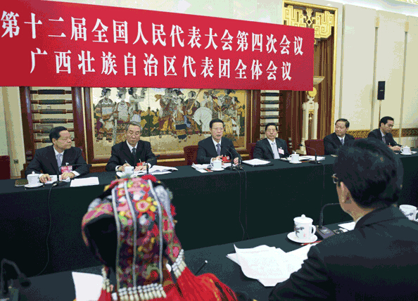 3月7日,中共中央政治局常委、国务院副总理张高丽参加十二届全国人大四次会议广西代表团的审议。新华社记者王晔摄